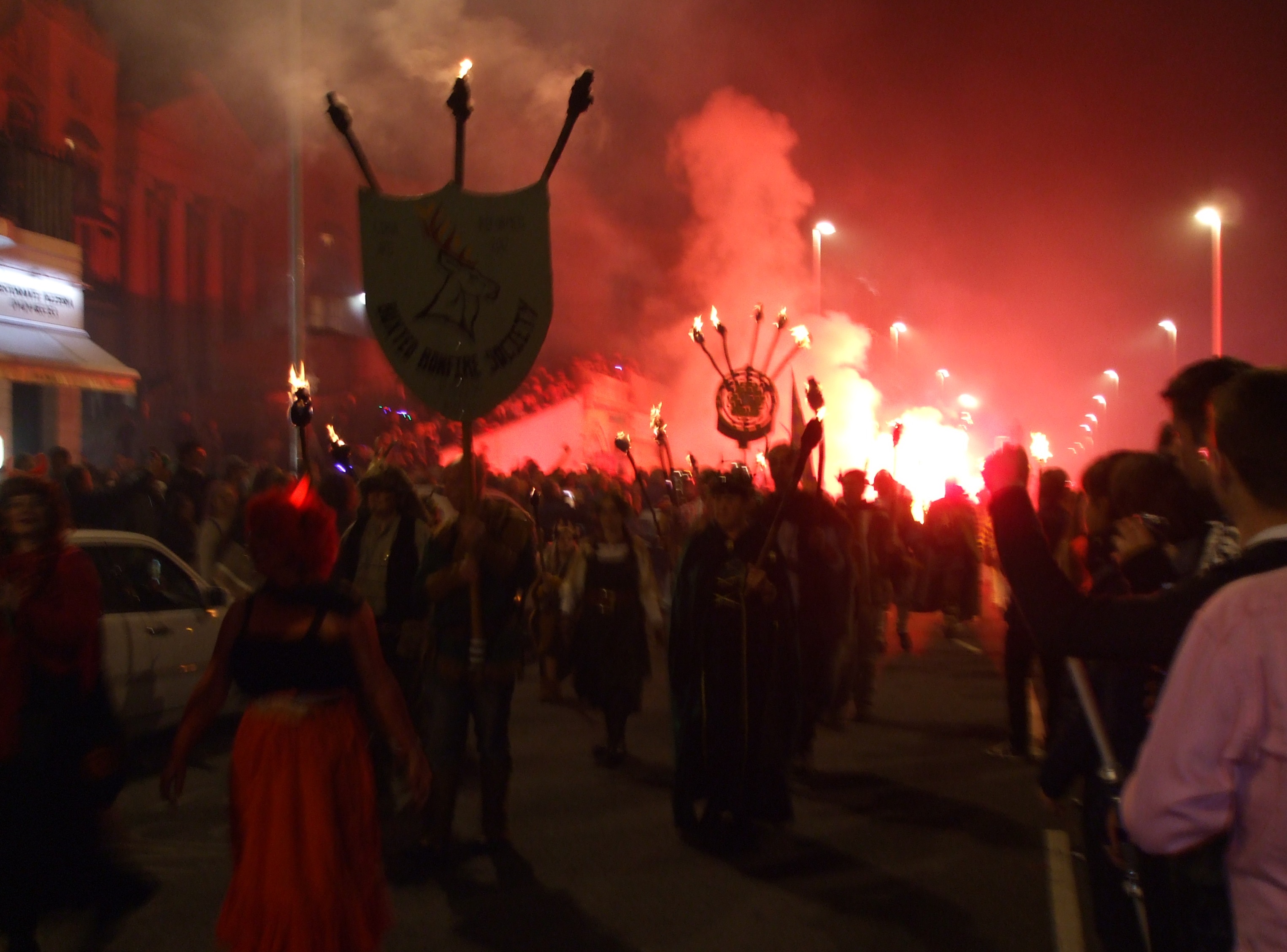 Saturday night was pretty spectacular - the fireworks were good, the procession was a jolly, rousing affair with lots of strangely-garbed and menacing characters. Didn't feel quite safe with so many cutlasses and blazing torches close by!